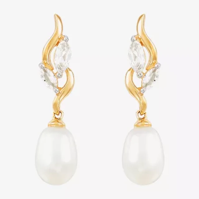 14K Gold Over Silver Cultured Freshwater Pearl & Lab-Created White Sapphire Ring