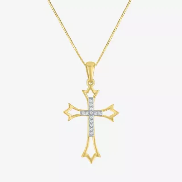 Womens 1/2 CT. T.W. Lab Grown White Diamond Sterling Silver Or 14K Gold Over Cross Pendant Necklace