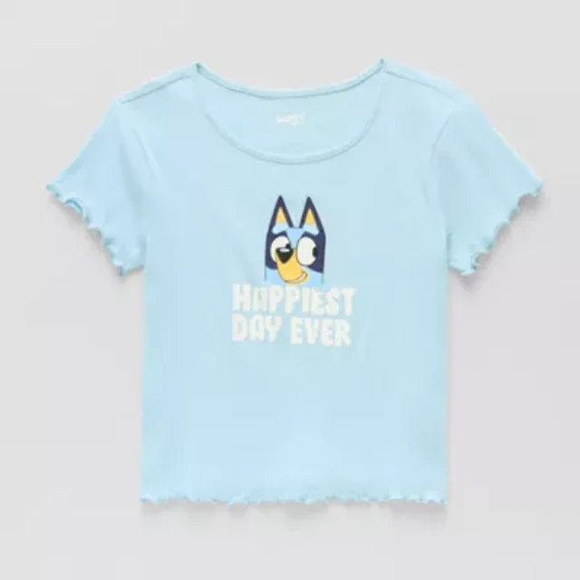 Little & Big Kid Girls Split Crew Neck Short Sleeve Regular Fit Bluey Graphic T-Shirt