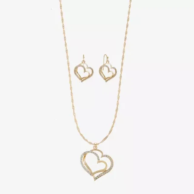 Liz Claiborne Pendant Necklace And Drop Earring Womens Glass Heart 2-pc. Jewelry Set