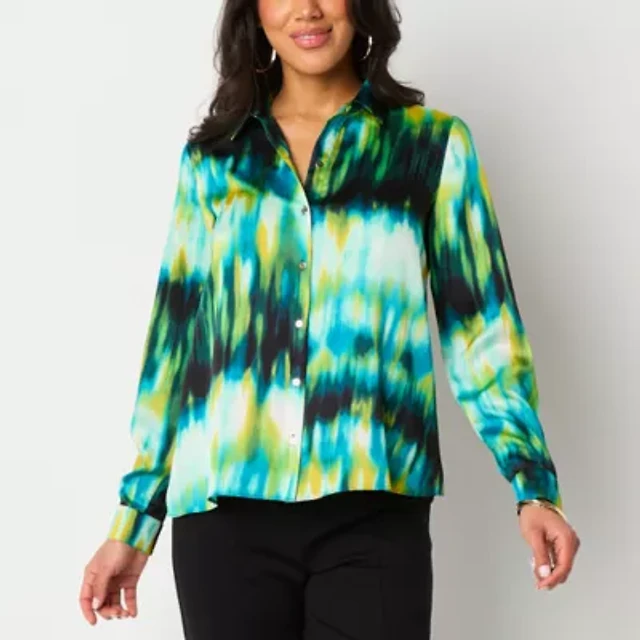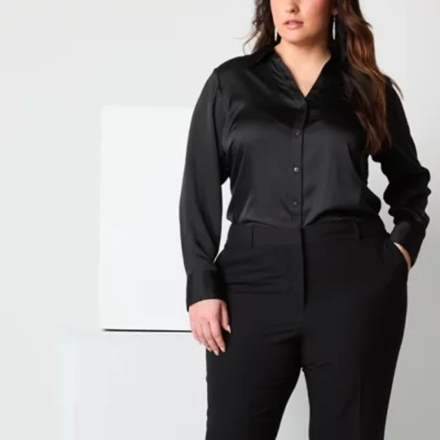 Bcx Women's Stretch Satin Button-Up 3/4-Sleeve Top