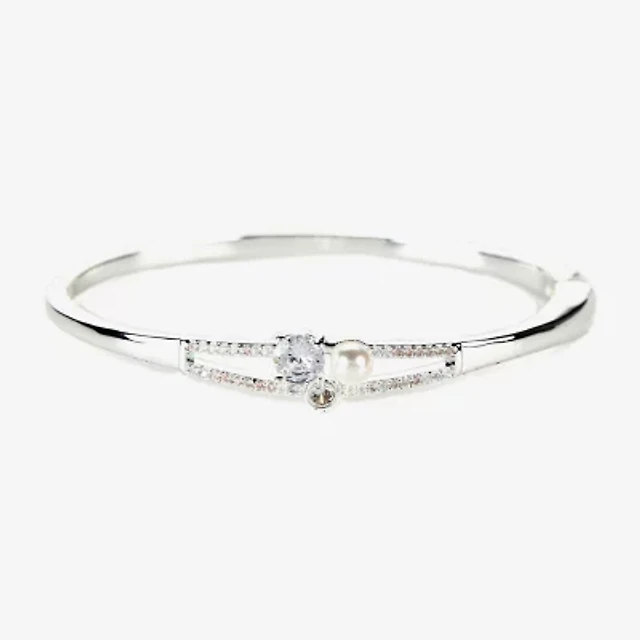 Sparkle Allure Womens White Simulated Pearl Pure Silver Over Brass Round Bangle Bracelet