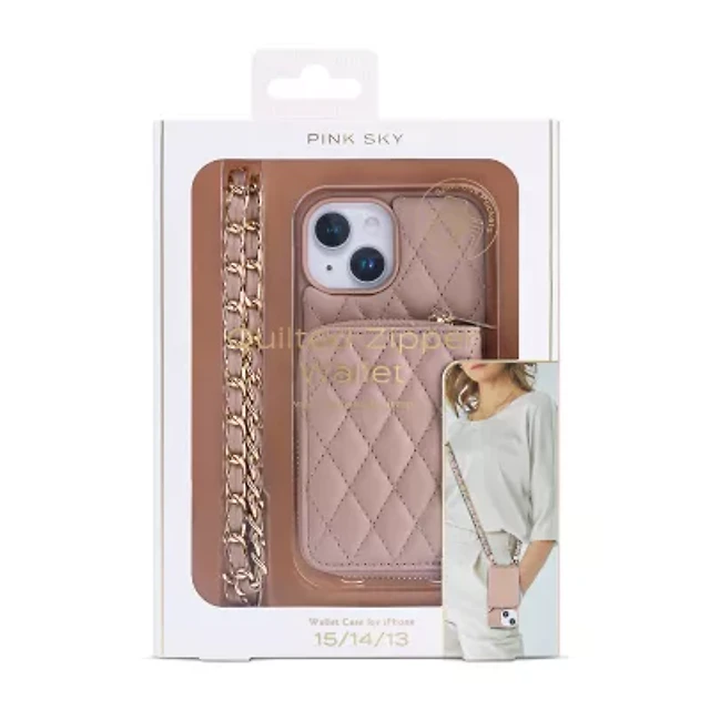 Pink Sky Puffy Leather Cardholder Wallet Case with Crossbody Strap
