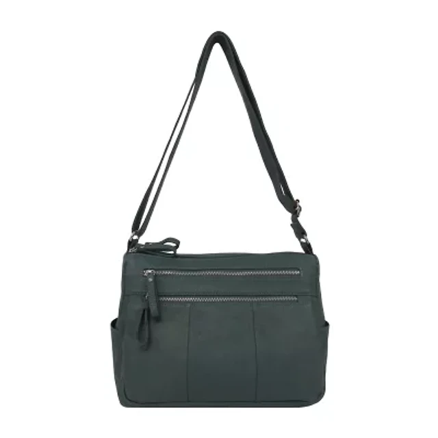 Bueno of California Distress Pebble Washed Double Zip Crossbody Bag
