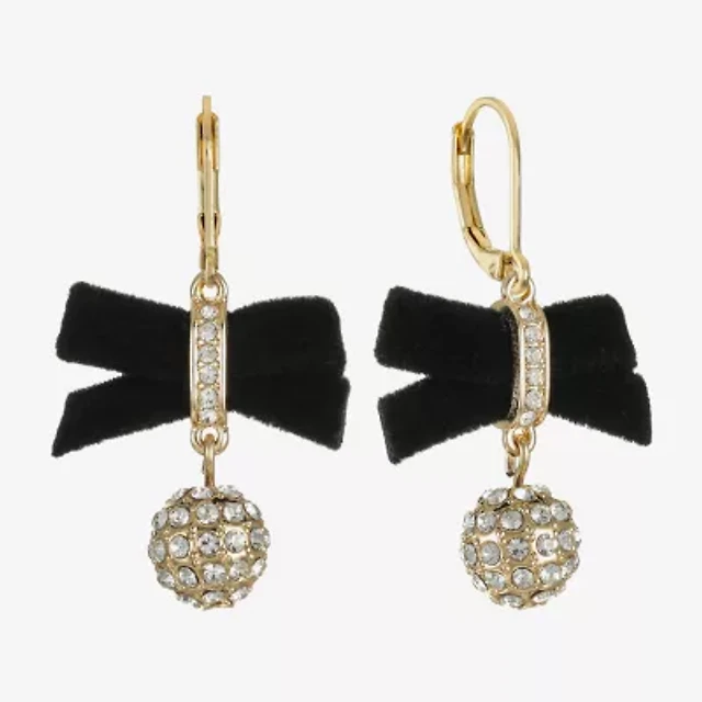 Monet Jewelry Gold Tone Velvet Womens Glass Bow Drop Earrings