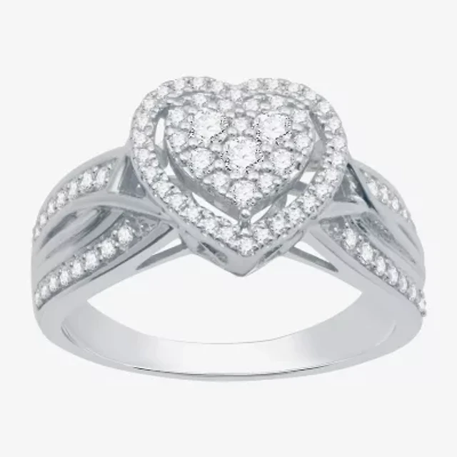 I Said Yes (H-I / I1) Womens 1/2 CT. T.W. Lab Grown White Diamond Sterling Silver Heart Side Stone Halo Engagement Ring