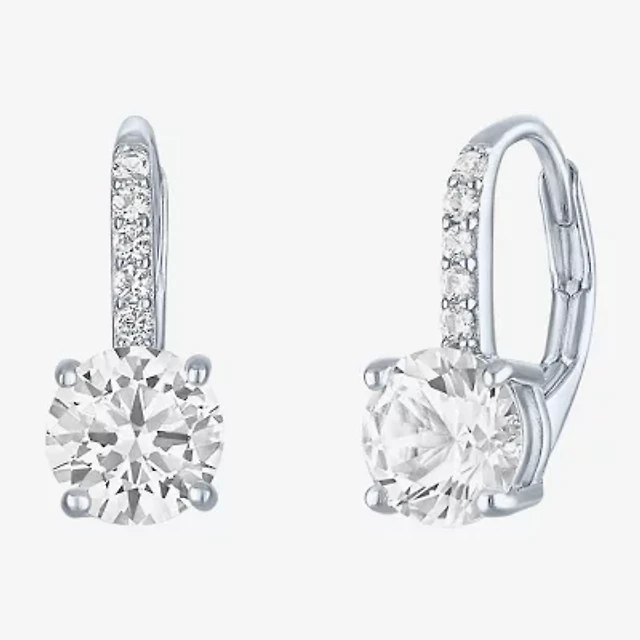 Yes, Please! Womens Lab Created White Sapphire Sterling Silver Round Drop Earrings