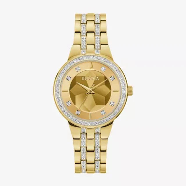 Bulova Diamond Womens Diamond Accent Gold Tone Stainless Steel Bracelet Watch 97p173