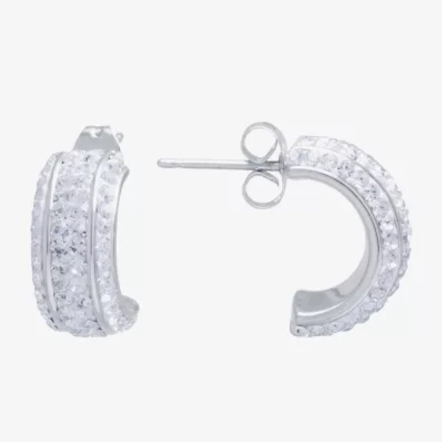 Yes, Please! Womens Lab Created White Sapphire Sterling Silver 18mm Hoop Earrings