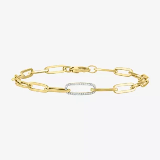Diamond Addiction (G-H / Si2-I1) Womens 10K Gold 8 Inch Hollow Paperclip Chain Bracelet