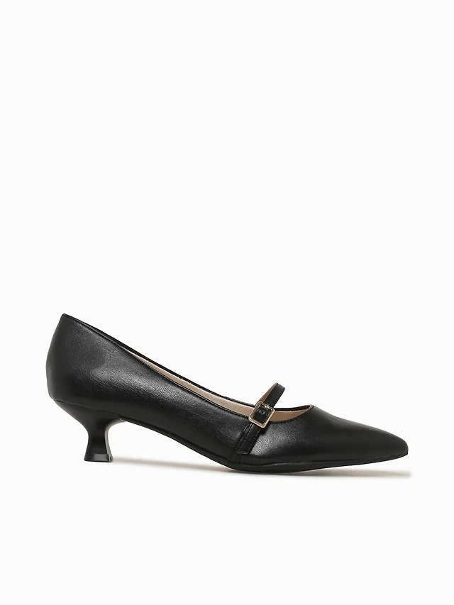 Leily Fb003 1 Strap Plain Black Lea