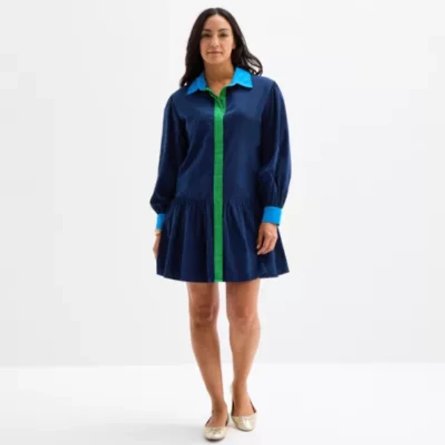 Jessica Howard Womens Long Sleeve Glitter Sheath Dress